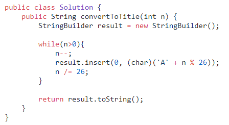 [LeetCode] [Easy] 171. Excel Sheet Column Title