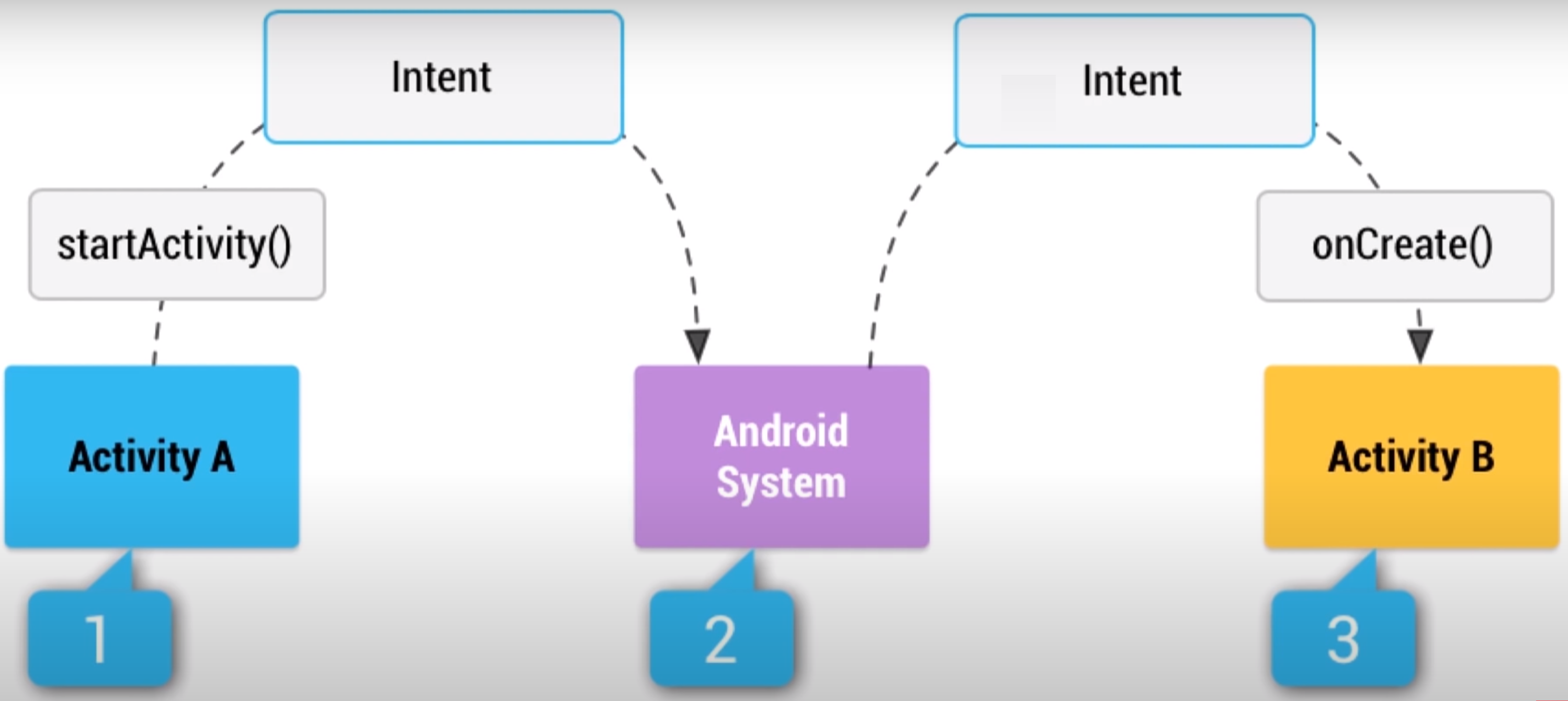 Intents - 한 화면에서 다른화면으로 넘어가기 위한 액션이나 서비스 사용